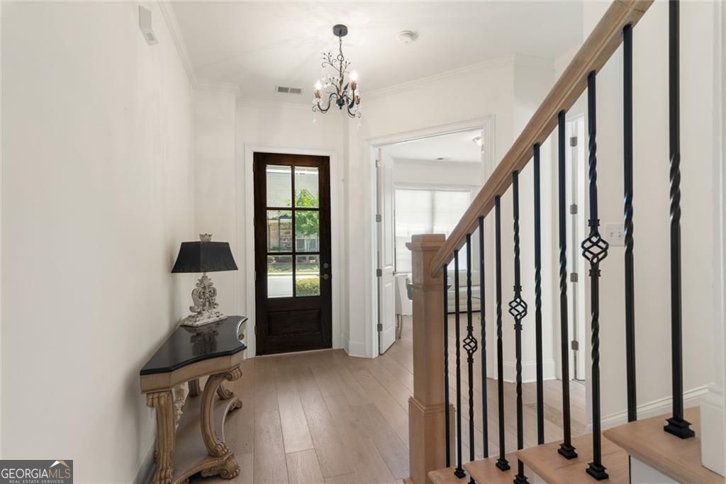 Welcome to this beautifully maintained, barely lived-in townhome located in the award-winning Overlook at Old Atlanta, a highly sought-after 55+ active adult community in Johns Creek/Suwanee. Enjoy the added benefit of Forsyth County's low senior property taxes along with a vibrant, amenity-rich lifestyle. This elegant Avery floor plan features an open-concept design with high tray ceilings, hardwood floors, abundant natural light, and refined finishes throughout. The spacious great room offers a gas fireplace and flows seamlessly into the dining area and gourmet kitchen, ideal for both everyday living and entertaining. The chef's kitchen is thoughtfully designed with custom cabinetry, quartz countertops, a large island, stainless steel appliances including double ovens, gas cooktop with vent hood, and a walk-in pantry plus butler's pantry for added storage and convenience. The main-level primary suite serves as a private retreat, featuring a spa-inspired bath with zero-entry oversized shower, dual vanities, private water closet, and separate his-hers large custom walk-in closets. A secondary bedroom with a full bathroom ensuite, a laundry room and an enclosed screened-in porch area, complete the main level. Upstairs offers a third bedroom with full bath and a versatile flex space that is heated and cooled, perfect for a home gym, media room, or additional office. There is a very large storage room upstairs as well. Residents enjoy exceptional amenities including a clubhouse, pool, fitness center, tennis and pickleball courts, mahjong, book club, ladies's lunch, men's group activities. The beautiful Chattahoochee Pointe Park nearby, features walking trails, disc golf, playgrounds, basketball courts, picnic areas, and river access. Conveniently located near shopping, dining, medical facilities, and entertainment, this move-in-ready home offers the perfect blend of luxury, comfort, and low-maintenance living in one of the area's most desirable active adult communities.